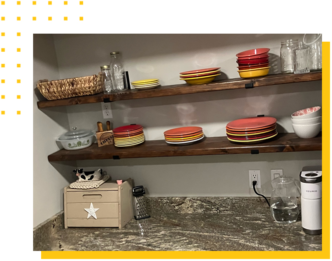 Add needed storage space to your home with custom cabinets, built-ins, and bookcases. Floating or classically mounted shelves, in a traditional or modern style, will expand display areas in any room of your home. Or bring new energy and life to a room by adding crown molding. Our craftsmen are ready to assist you with a range of solutions to elevate your interior spaces.